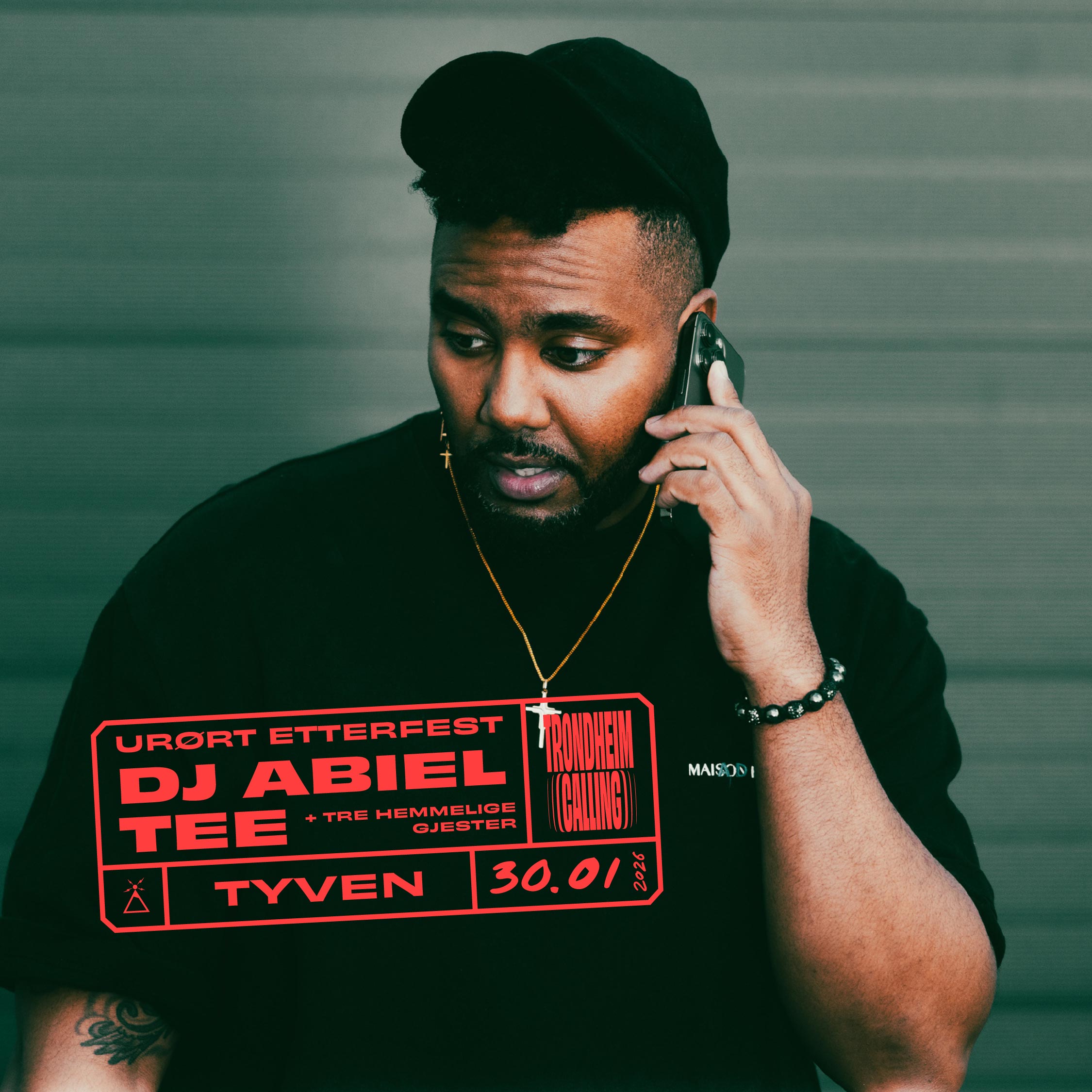 Abiel Tee, kjent fra NRK P3 og mP3 er blant de hotteste DJene fra Oslo. Fra å hoste VG-lista, til å spille på festivaler som Findings, Kadetten, Skral, til å spille/varme opp for verdensstjerner som Rihanna (US), Justin Bieber (US) Nicki Minaj (US), Jax Jones, Ty Dolla Sign (US) Big Sean (US) Jason Derulo (US), The Game (US) – og mange flere. Abiel er opprinnelig fra Oslo, og er i dag en klubbfavoritt i tigerstaden. Det blir hett på dansegulvet, der Abiel tar med seg et afrobeat og hiphop-sett som er spesialsydd for denne Trondheim Calling-natten!